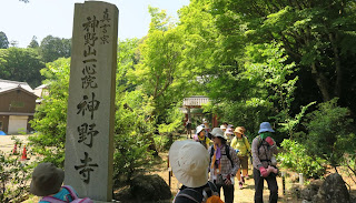 まだ5月と言うのに連日、各地で30度を超える夏日に成っているとのことでした。山添村の森林科学館からスタートさせて頂きましたがやはり森林と言うこともあり幾分は涼しくスタートさせて頂けました。途中、目の神様と言われる塩瀬地蔵さんをお参りして最初の見所である鍋倉渓へ向かいました。突然、目の前に黒々とした火山の溶岩の流れを思わせる迫力の光景が飛び混んできました。自然の造形とも古代人が天の川を地上に再現したものとも言われる不思議な地形をご覧頂きました。先ずは記念写真を撮って鍋倉渓に沿って作られた木道を直登で天狗岩まで向かいました。天狗岩は天の川銀河と夏の大三角形を地上に配し古代人が天体観測をしたのでは無いかとも言われる磐の一つです。なんとなく古代の浪漫を感じる場所でも有りました。木漏れ日の深緑の登山道を上り詰めると頂上展望台に到着です。展望台に上がり360度の眺望で滋賀県、奈良県、三重県、京都府の4地域を見ることできました。真っ青な空と爽やかな風を頬に感じながら皆さんと一緒にお弁当を頂きました。午後からは山麓のめえめえ牧場へ降りて、可愛い羊がたわ群れる長閑な景色を楽しみました。再度、頂上付近まで登り直して神野神社の王塚を拝見し新芽の美しいヤマト茶の茶園を抜けてシャガやアヤメの咲く神野寺まで降りました。帰路の途中、阿山のもくもくファームに立ち寄り野菜や乳製品などのお買物をして楽しかった山旅を終えました。